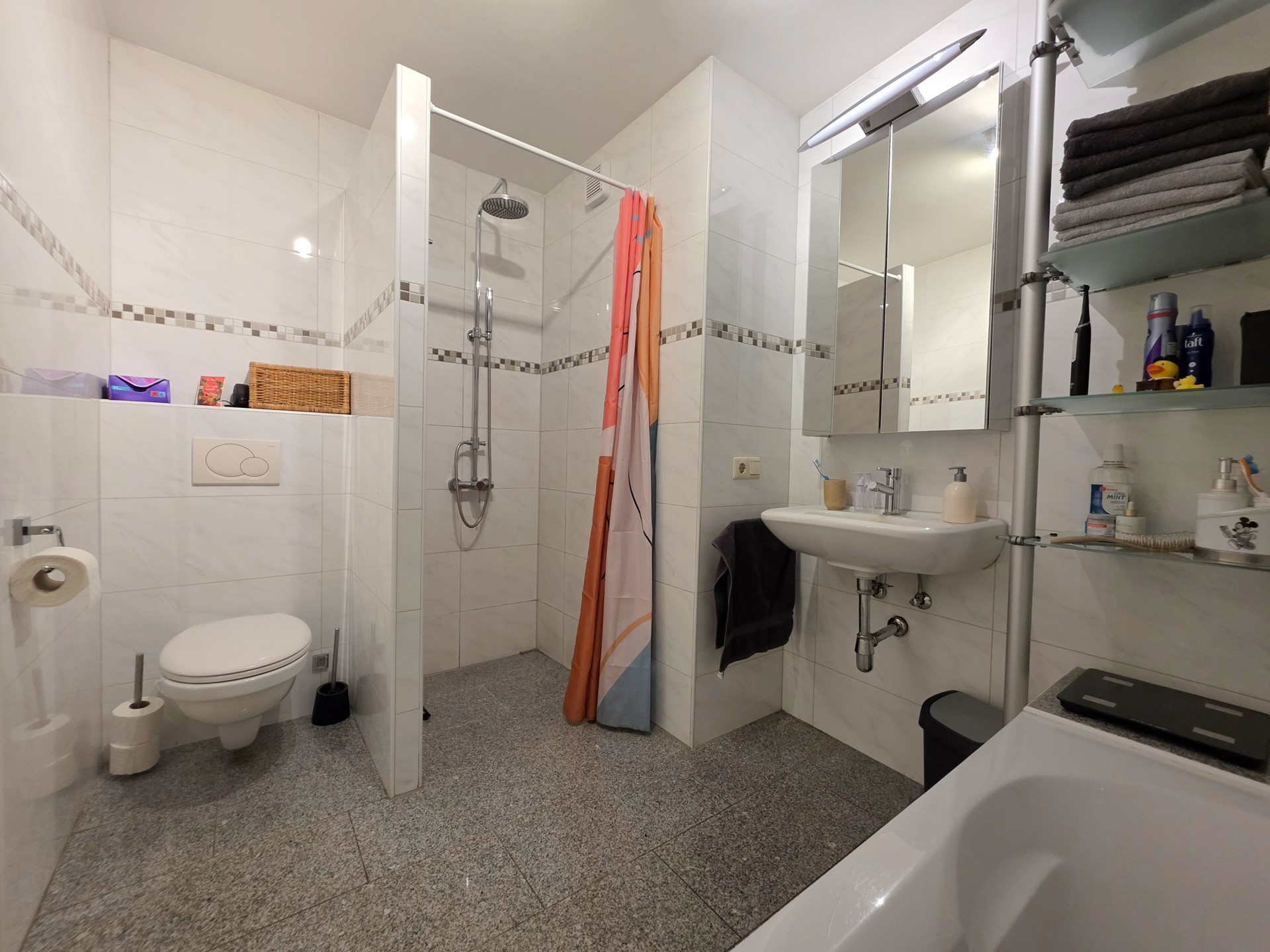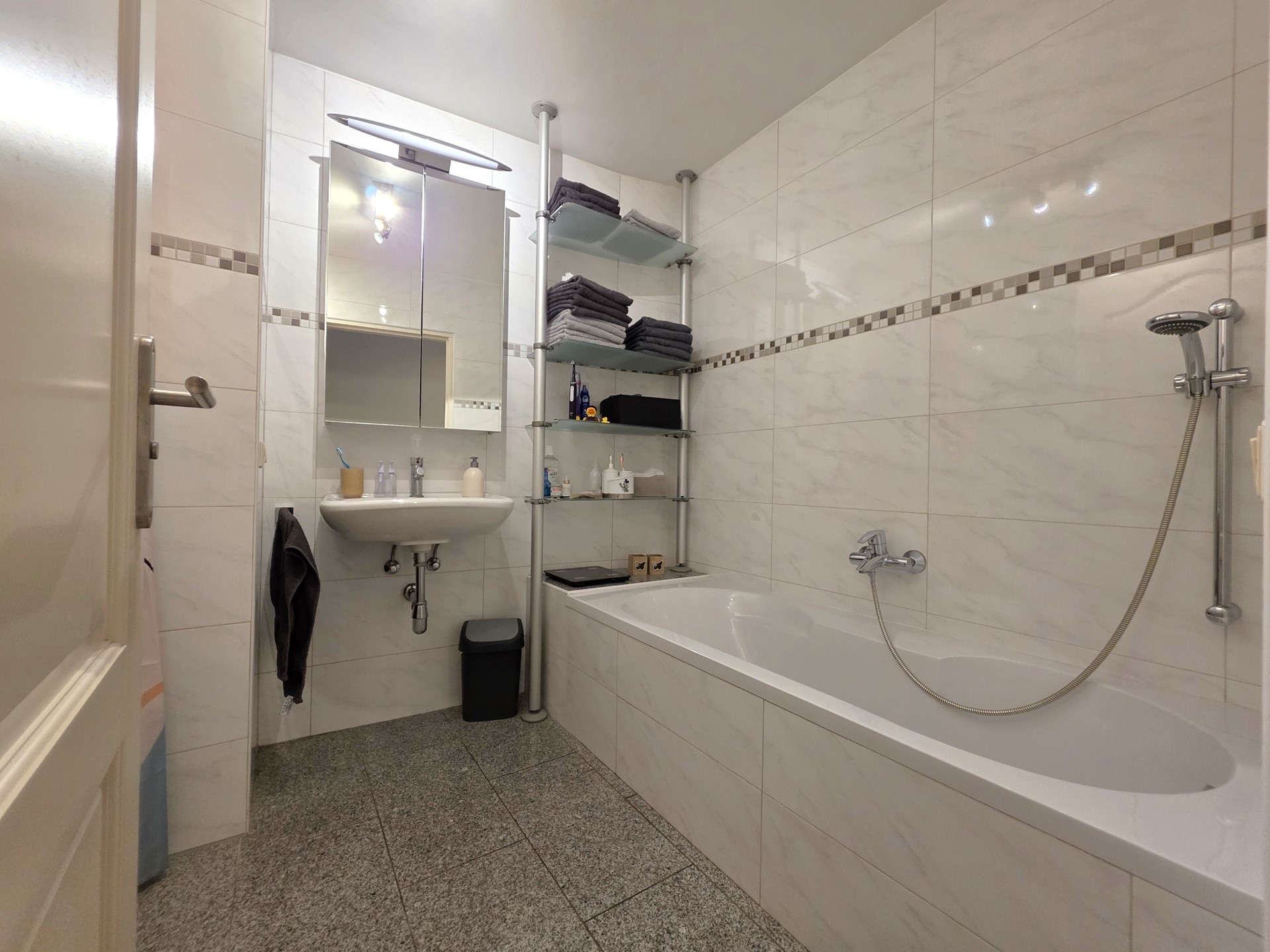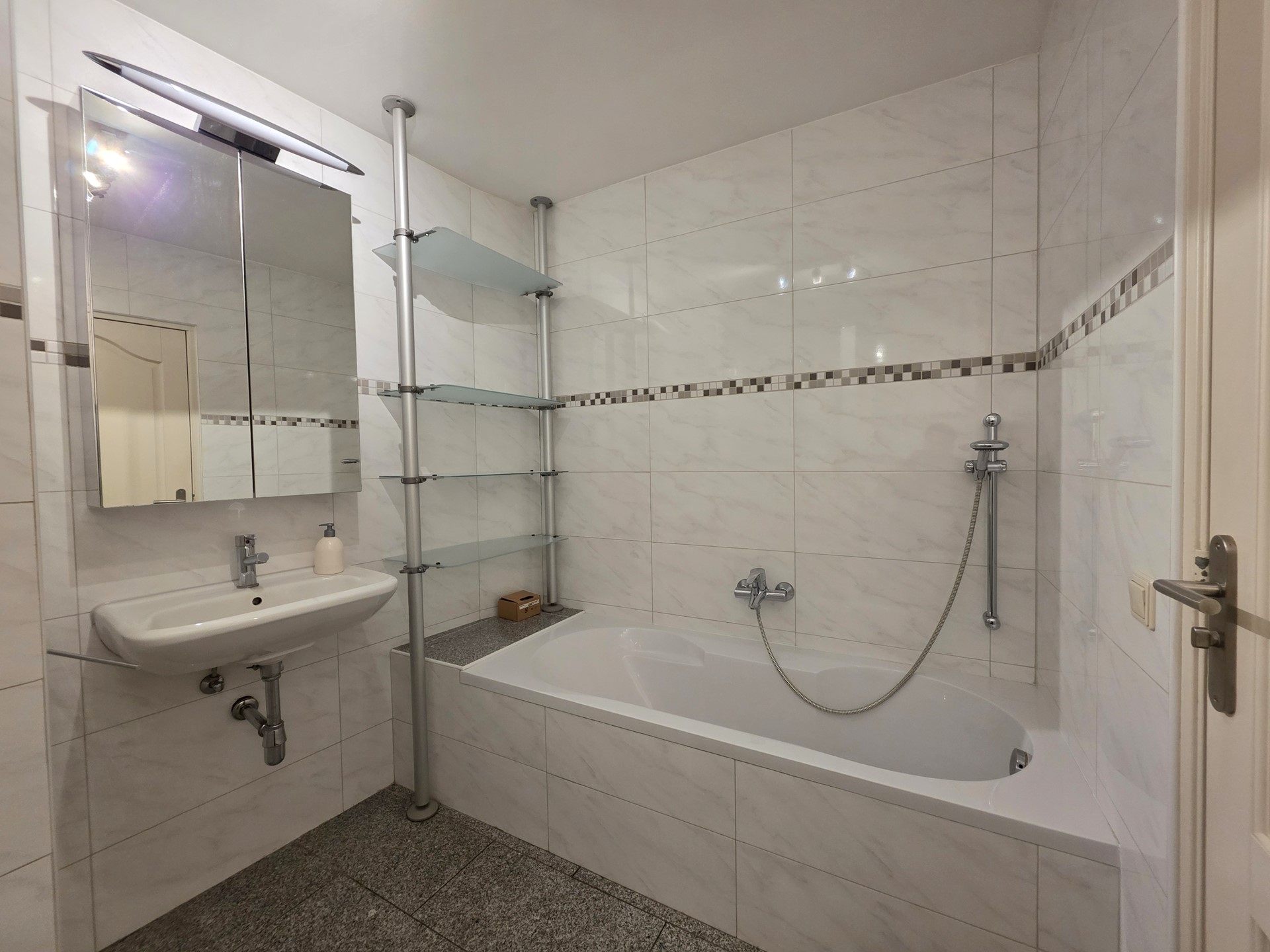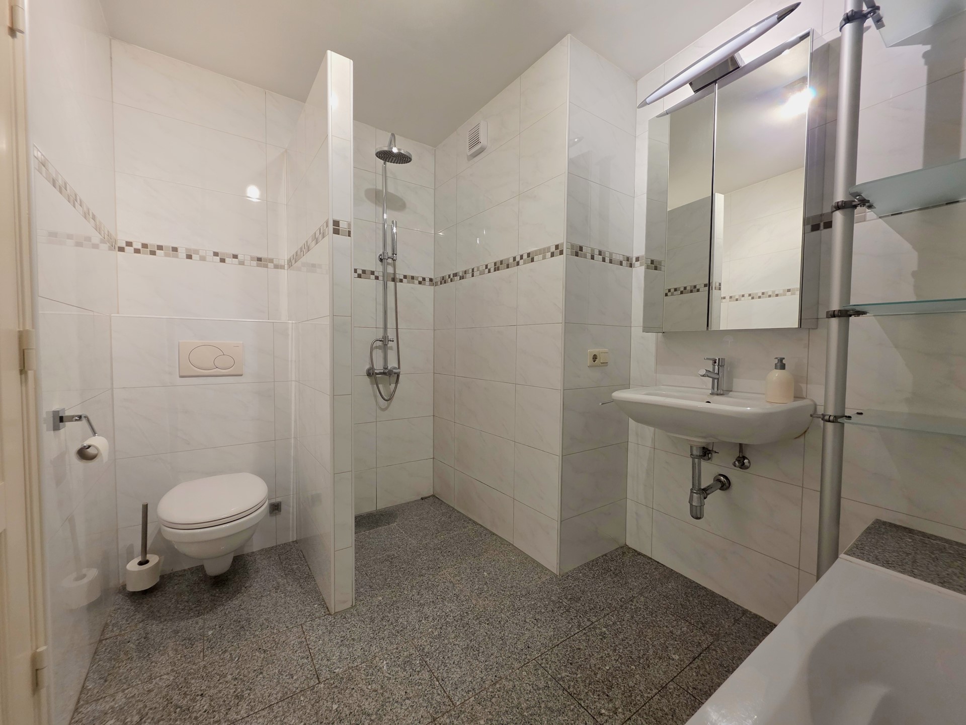 Via een gang kom je tot de andere vertrekken, zoals 2 slaapkamers, een ruime bergruimte en de complete badkamer v.v. inloopdouche, tweede hangcloset, wastafel met spiegelkastje en ligbad.