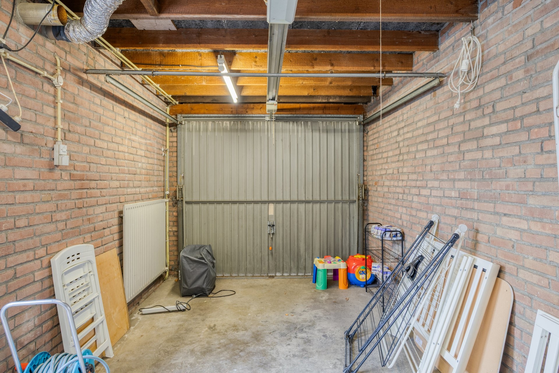 Naast de woning ligt de garage, die ruimte biedt voor één auto en/of eventueel wat extra opslag.