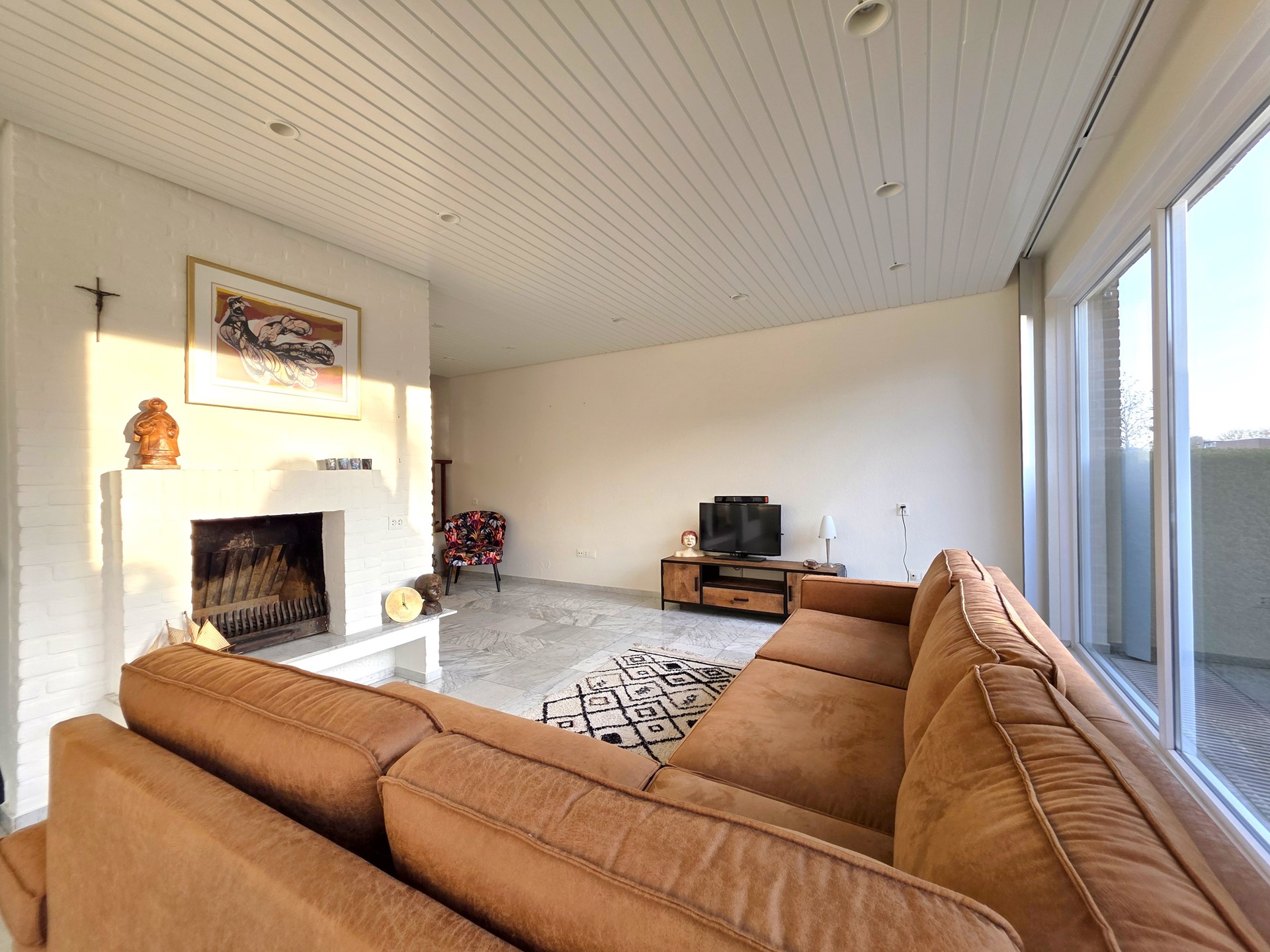Aan de voorzijde bevindt zich een woonkamer voorzien van een open haard, grote glaspartijen, ruime trapkast en carrara marmeren vloer. Ook hier is de tuin zo ingericht dat je als bewoner over veel privacy beschikt.
