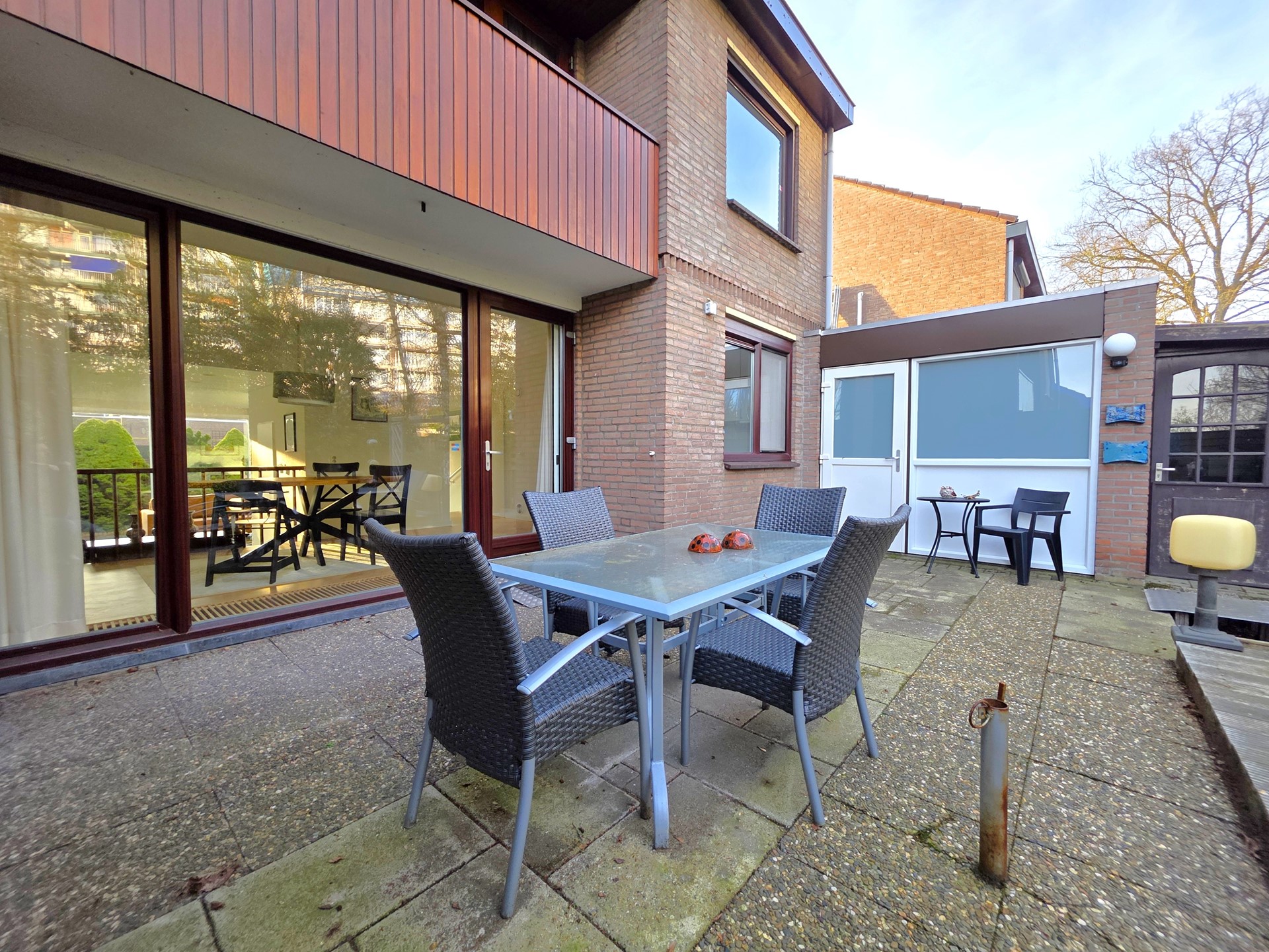 Vanuit het naastgelegen eetgedeelte is er toegang tot de achtertuin, middels een schuifpui. De tuin speels aangelegd en beschikt over voldoende privacy.