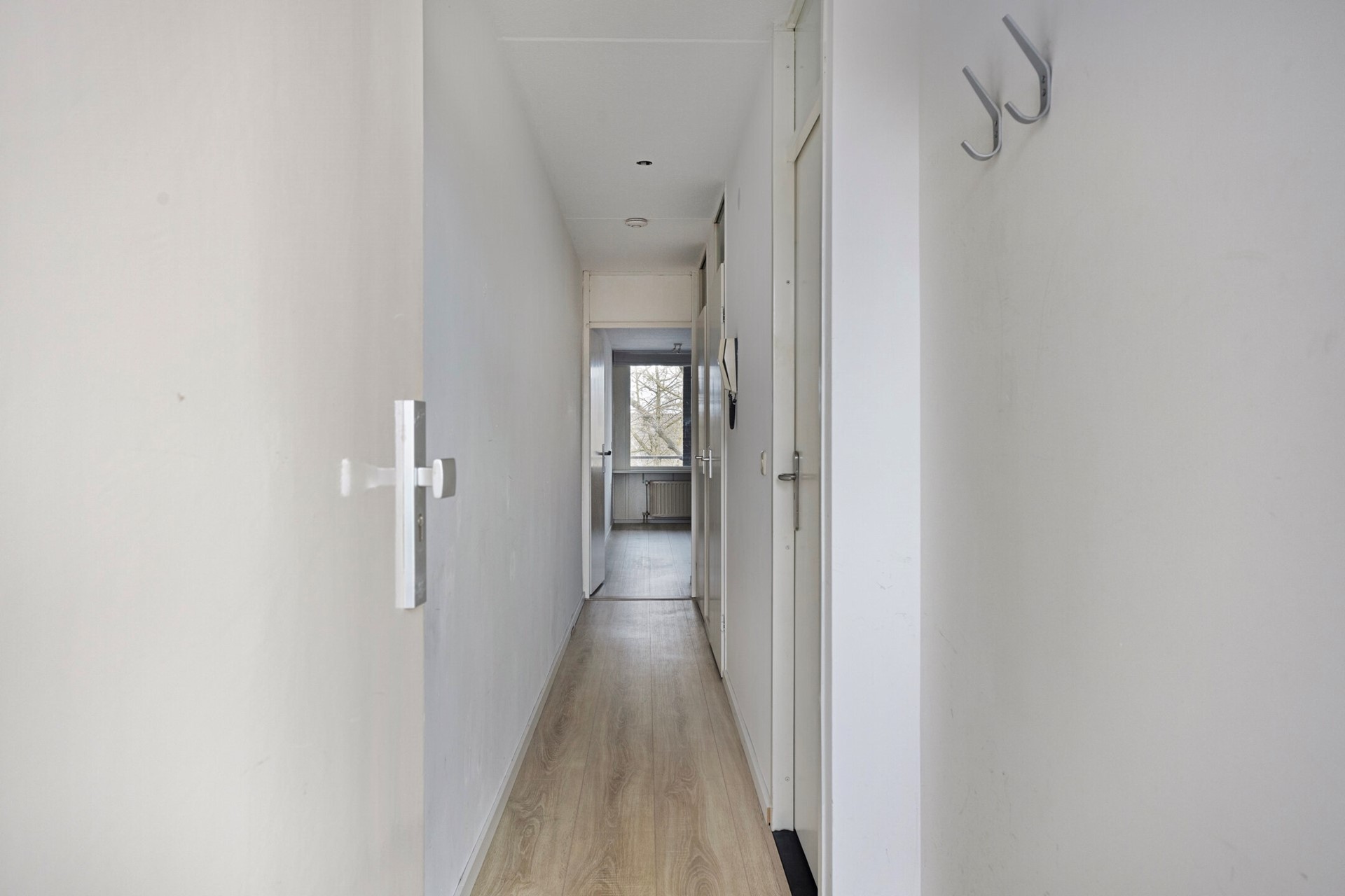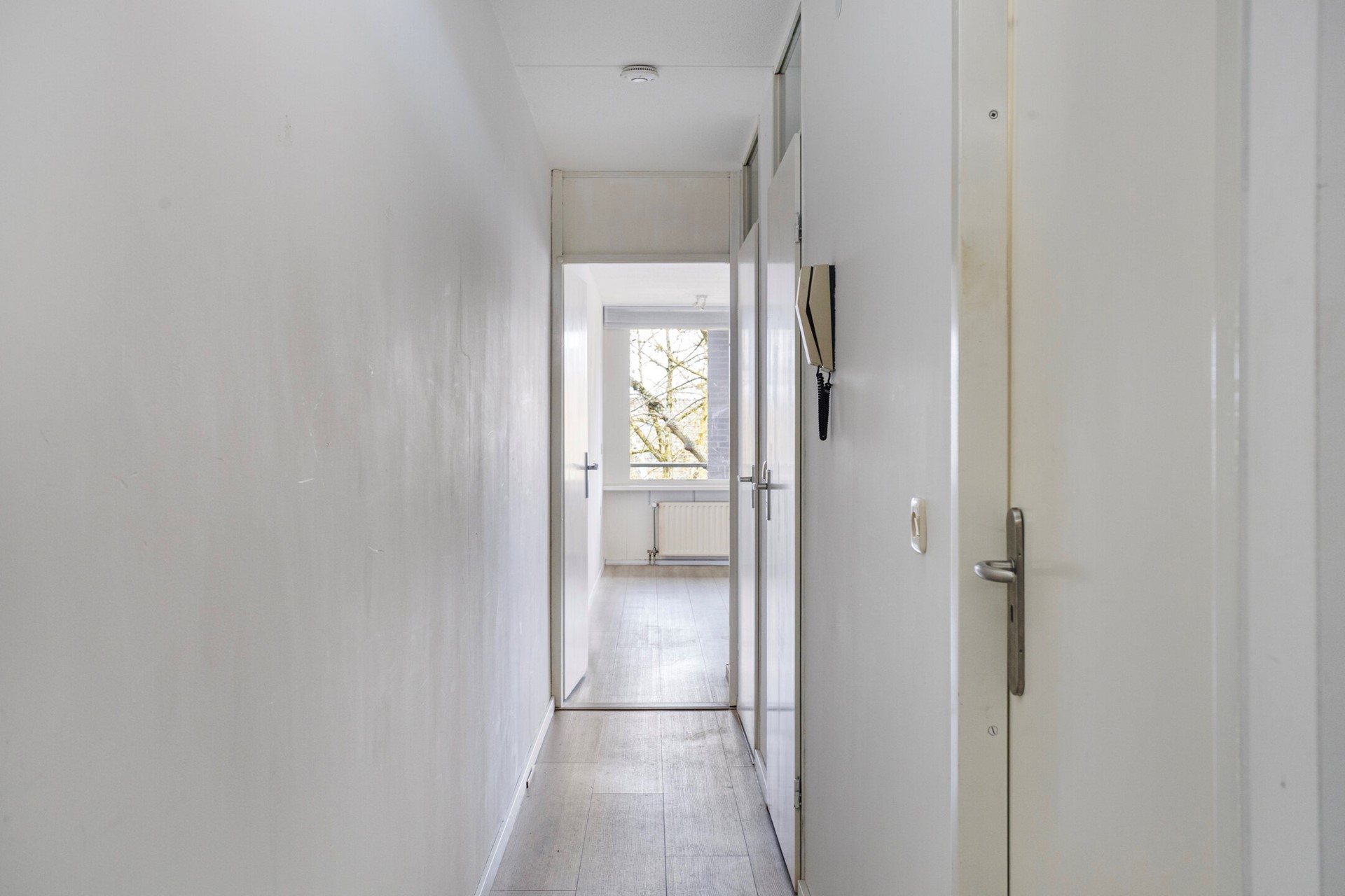 Eerste verdieping: Galerij met meterkast en toegang tot appartement. Entree/hal met toegang tot alle vertrekken.